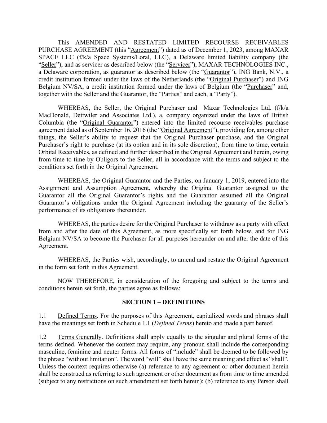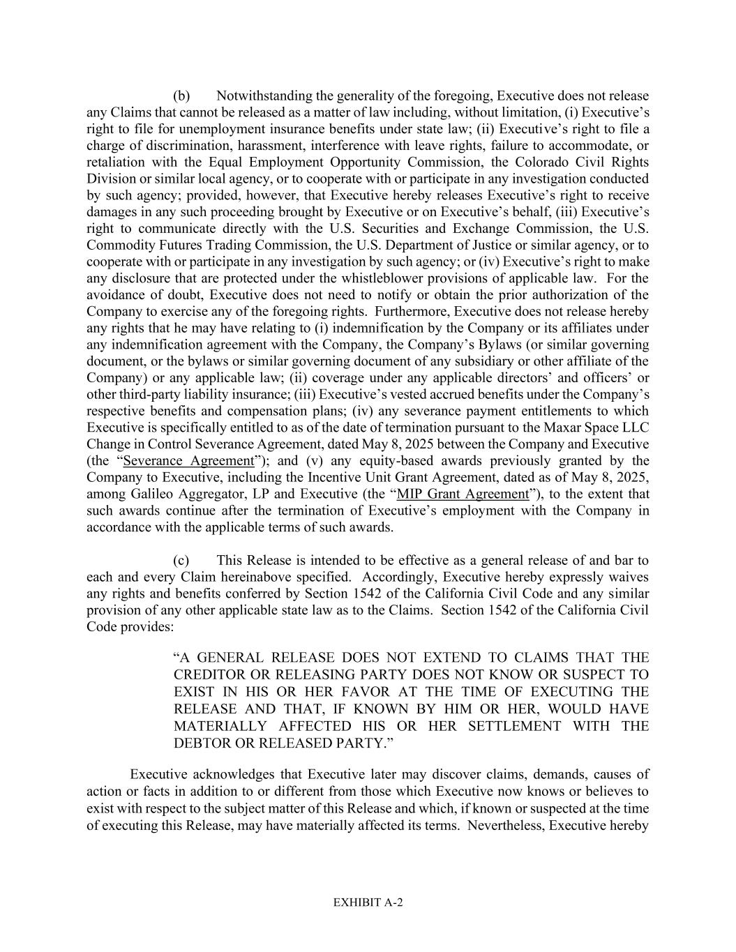 | 10.20 | | Waiver, Consent, Amendment and Assignment Agreement, dated January 13, 2026, by and among Lanteris Space LLC, as seller and servicer, Vantor Parent Inc., as assignor and existing guarantor, Intuitive Machines, LLC, as assignee and new guarantor, and ING Belgium NV/SA. | 8-K | 001-40823 | 10.2 | January 13, 2026 |
